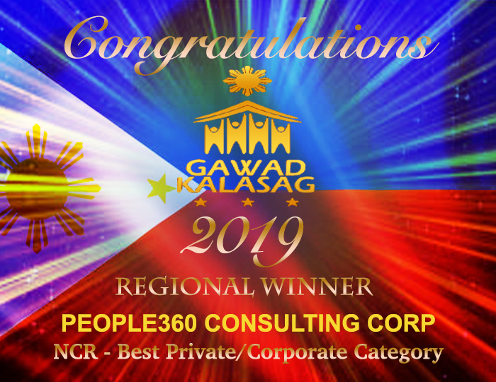 Congratulations once again to People360 Consulting Corporation for winning the Best Private/Corporate category in the recently concluded Gawad Kalasag Awards 2019! Together with other winners from the NCR region totaling to 14 from different categories besting 47 entries, the regional winners will be competing in the national level. Awarding of the regional winners is scheduled on the last week of July 2019 as part of the Culminating Ceremony of the National Disaster Resilience Month.
