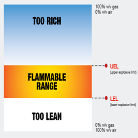 Some gases have what is called an Upper and Lower Explosive Limit. Between the Upper and Lower Limit, gas when introduced with enough heat could ignite, and depending on the substance, the reaction can be fast and strong enough to be an explosion.