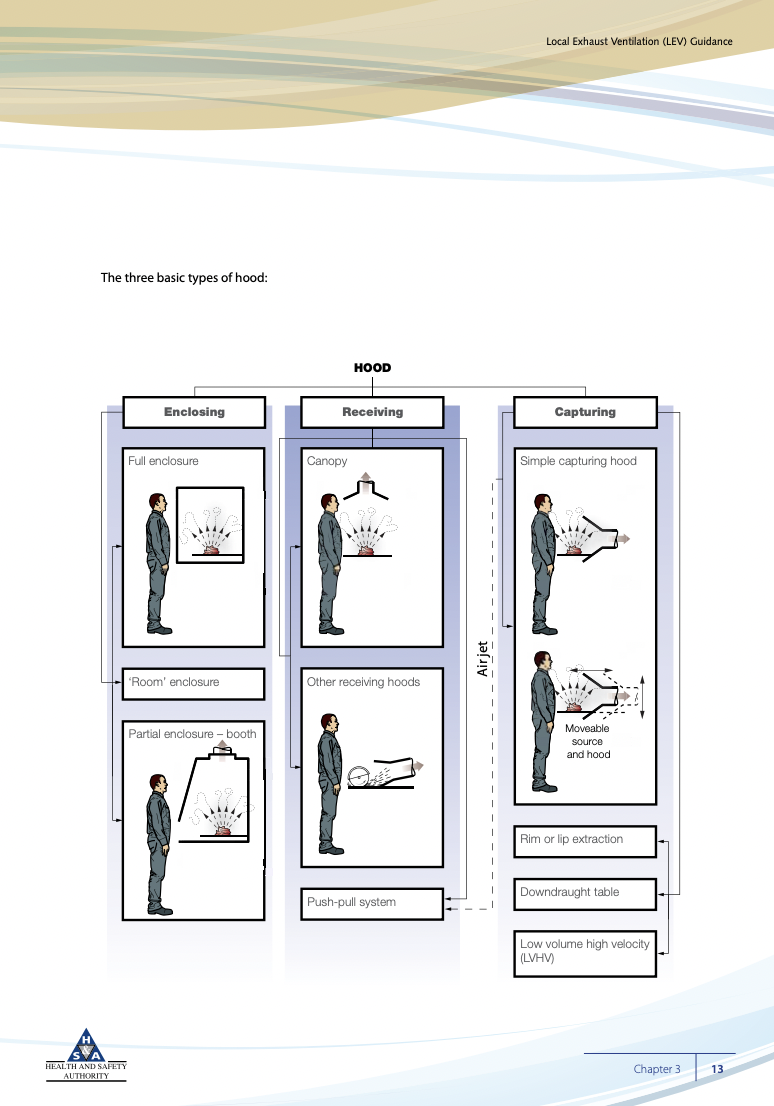 Local Ventilation aims to prevent the contaminant from reaching the breathing zone in the first place. There are different forms of local exhaust ventilation, with varying applications depending on the type of work and materials being worked on.